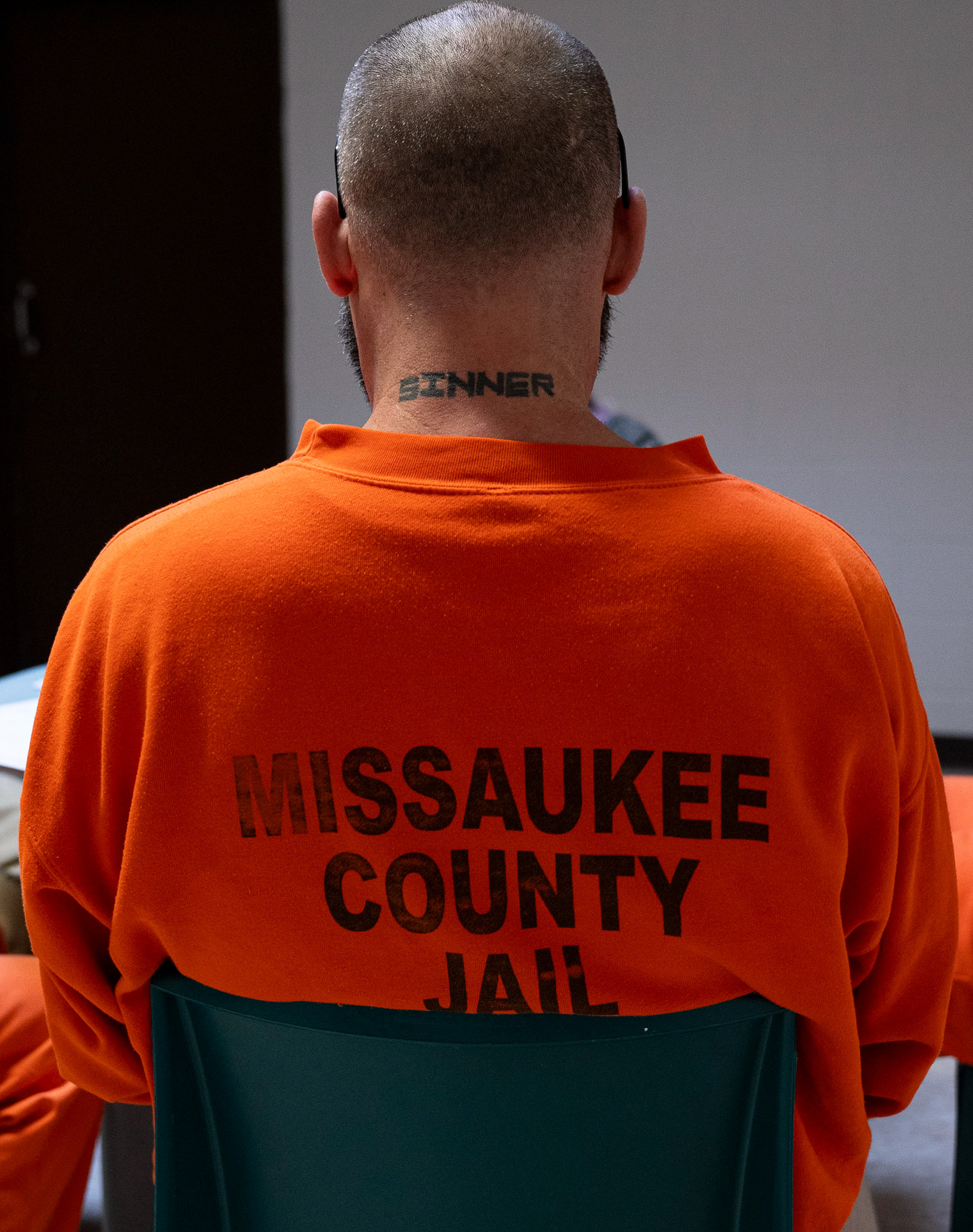 Matthew VanderJagt, 40, a person behind bars at Missaukee County Jail, attends the substance use peer support group hosted by Catholic Human Services on March 19, 2024, in Lake City, Mich.