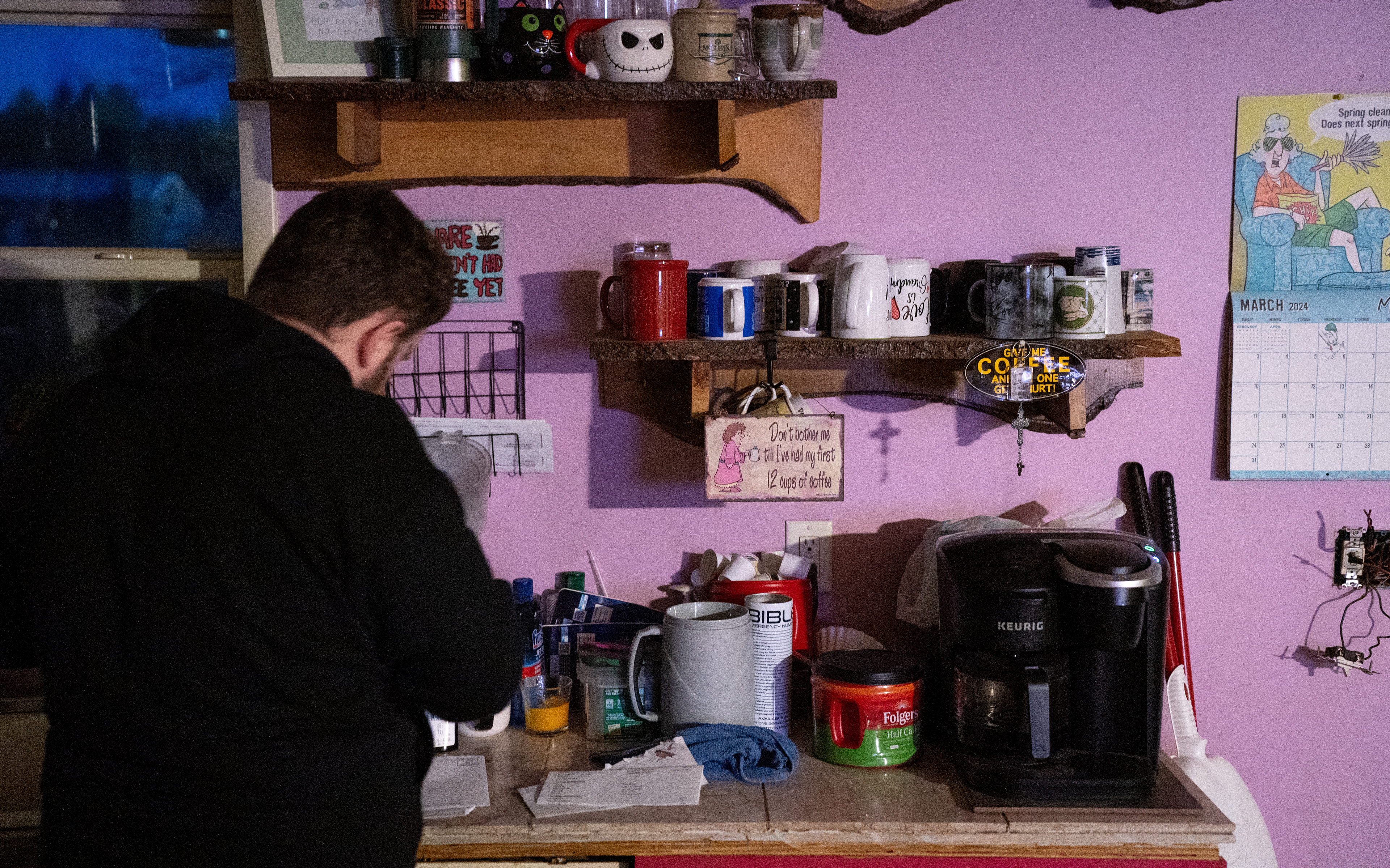 Hank makes coffee and looks through the pile of mail left for him on his first day out of Missaukee County Jail in 305 days on Saturday, March 30, 2024 in Lake City, Mich.