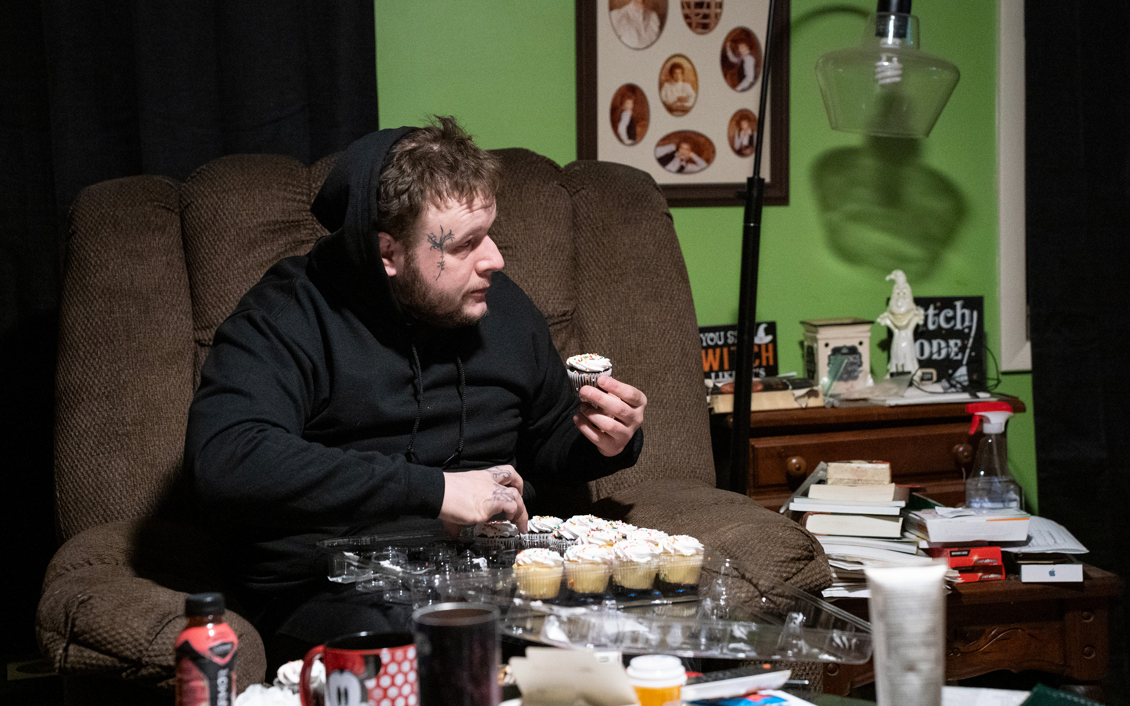 John “Hank” Staats eats a breakfast of four cupcakes and three chicken tenders on his first day out of Missaukee County Jail in 305 days on Saturday, March 30, 2024 in Lake City, Mich.